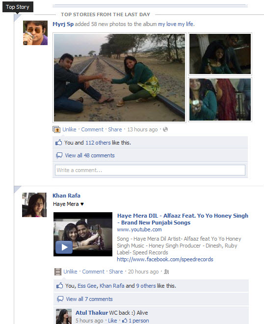 4. RECENT STORIES - Most Recent Stories as See New Stories under the status area.If you check Facebook more frequently, you'll see the most recent stories first.(See Below Snapshot)