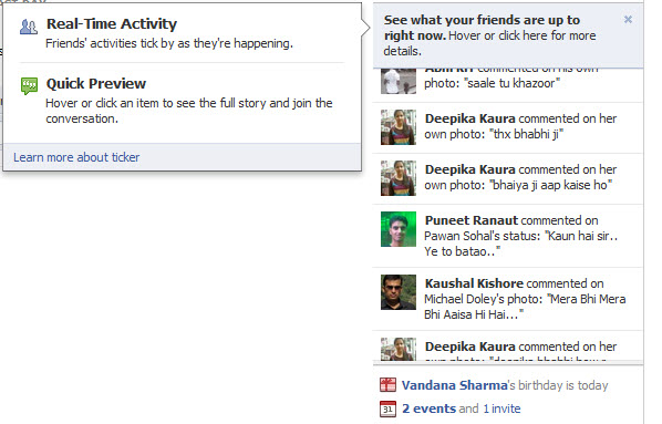 News Feed often has a time lag. Usually when you're on Facebook, a lot of your friends are too. Until now, there hasn't been an easy way to see and chat with your friends about photos, articles, and other things they're posting in real-time. The new ticker helps you do just that. You can see what going on with friends and others Like their posts, comment on them, add friends, watch video directly from here.